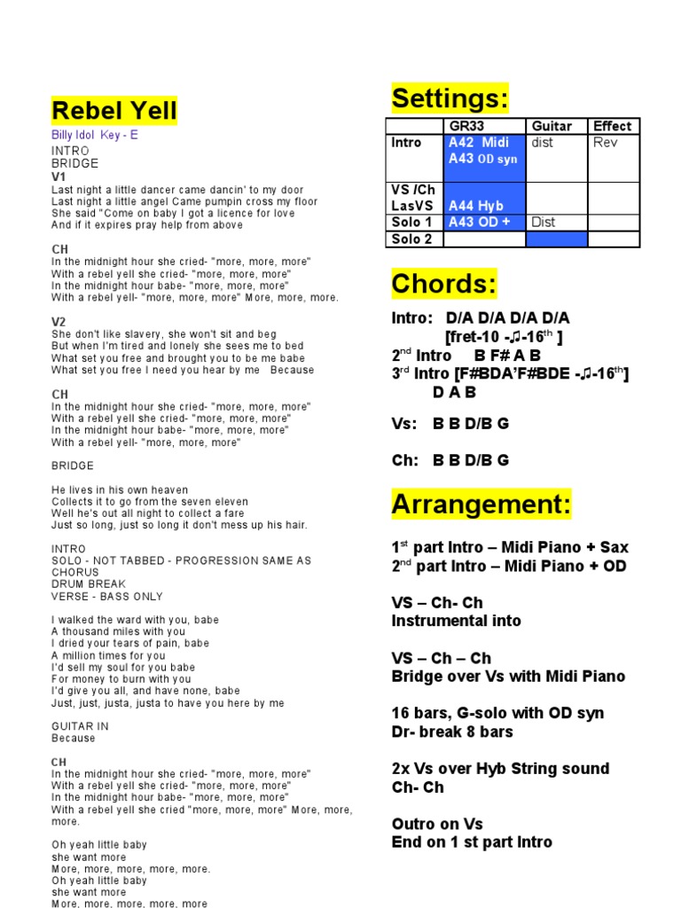 Chord Rebel Yell Billy Idol Tab Song Lyric Sheet Guitar Ukulele Chords Vip